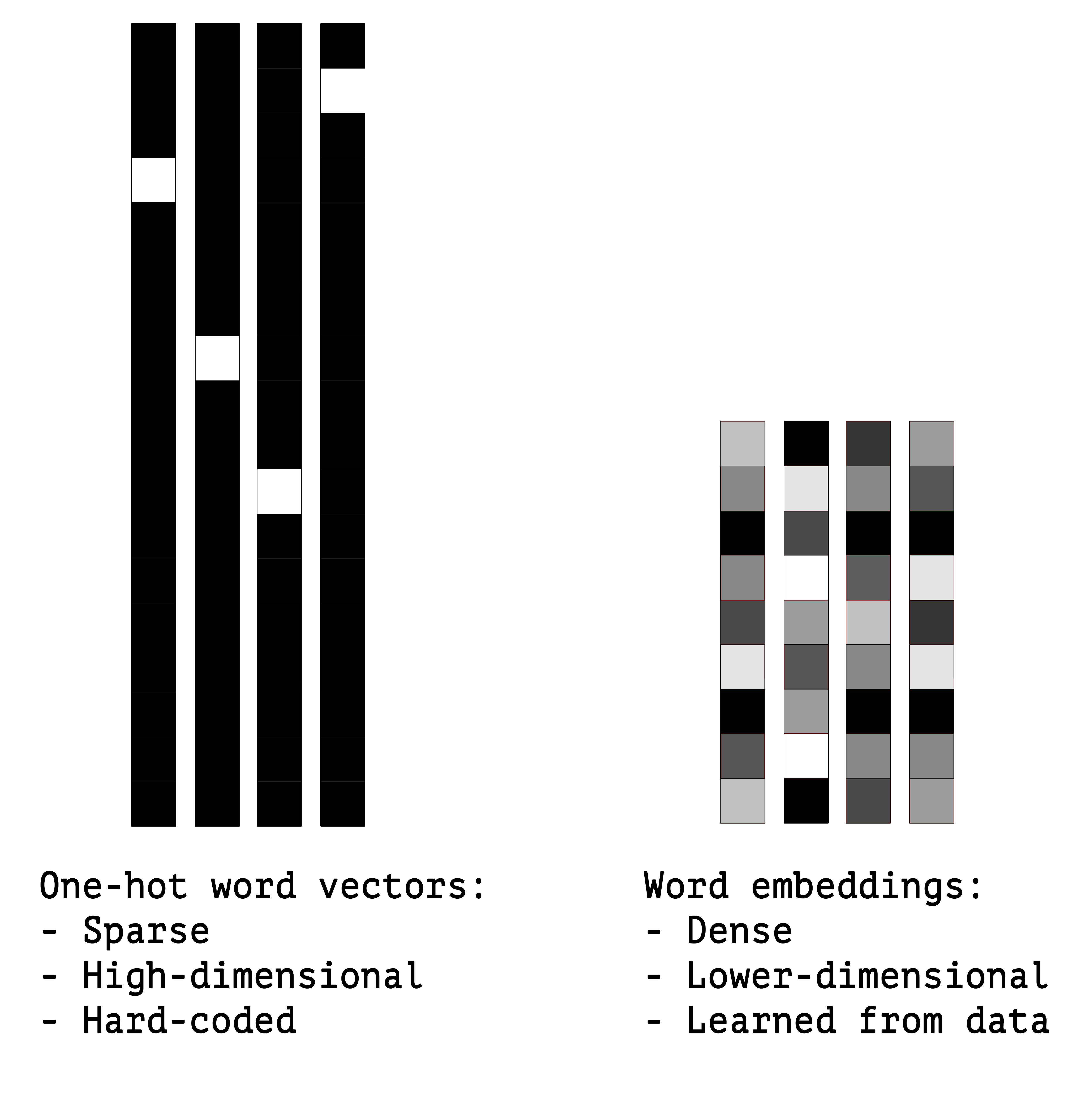 사람의 언어를 완벽하게 매핑해서 어떤 자연어 처리 작업에도 사용할 수 있는 이상적인 단어 임베딩 공간이 있을까요? 아마도 가능하겠지만 아직까지 이런 종류의 공간은 만들지 못했습니다. 사람의 언어에도 그런 것은 없습니다. 세상에는 많은 다른 언어가 있고 언어는 특정 문화와 환경을 반영하기 때문에 서로 동일하지 않습니다. 실제로 좋은 단어 임베딩 공간을 만드는 것은 문제에 따라 크게 달라집니다. 영어로 된 영화 리뷰 감성 분석 모델을 위한 완벽한 단어 임베딩 공간은 영어로 된 법률 문서 분류 모델을 위한 완벽한 임베딩 공간과 다를 것 같습니다. 특정 의미 관계의 중요성이 작업에 따라 다르기 때문입니다.